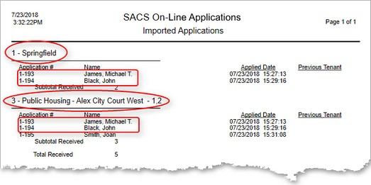 Displays the applications which have been entered using the SACS Web Application Website but not yet imported into your SACS Housing Software database.