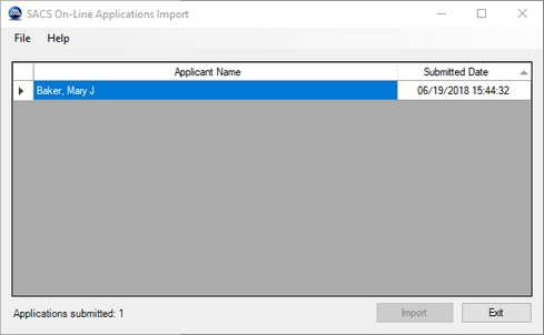 The imported Applications will no longer be displayed in the SACS On-Line Application Import screen.